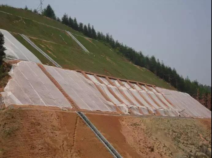 以往的邊坡防護綠化方法是:在挖好的邊坡上先掛網(wǎng),再通過壓力噴射將草種和泥漿組成的混合液噴到邊坡上,將邊坡覆蓋,等草長出后達到植物防護的目的。但是這種方法有很大的局限性,它只能用于坡度小于45°的邊坡防護。雖然這種防護方式采取掛網(wǎng)錨固等措施,試圖使土壤能很好地附著于坡面,但是因為邊坡高陡和土壤的自重,使噴植層無法抵抗暴雨沖刷和烈日暴曬,最終引起溝蝕、片蝕,甚至坡面整體垮塌,不能解決固土這一根本問題。